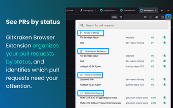 GitKraken Browser Extension är ett kraftfullt verktyg för utvecklare som arbetar med GitHub, GitLab, Bitbucket och Azure DevOps. Denna webbläsartillägg gör det möjligt att enkelt spåra och hantera pull requests direkt från din webbläsare. Med funktioner som att organisera PR:er efter status och öppna dem med ett enda klick i nya flikar, sparar det tid och förbättrar arbetsflödet. Dessutom kan användare få tillgång till kodförslag och snabbt navigera till GitKraken Desktop eller GitLens i VS Code för en smidig utvecklingsupplevelse.